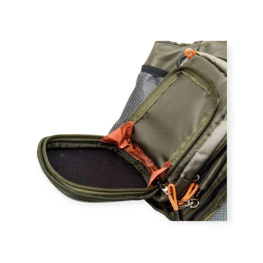- Розширювана, основна кишеня ззаду на блискавці, з трьома відсіками для зберігання рибальського приладдя в рюкзаку.